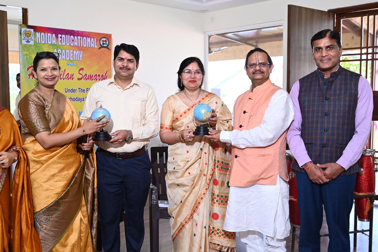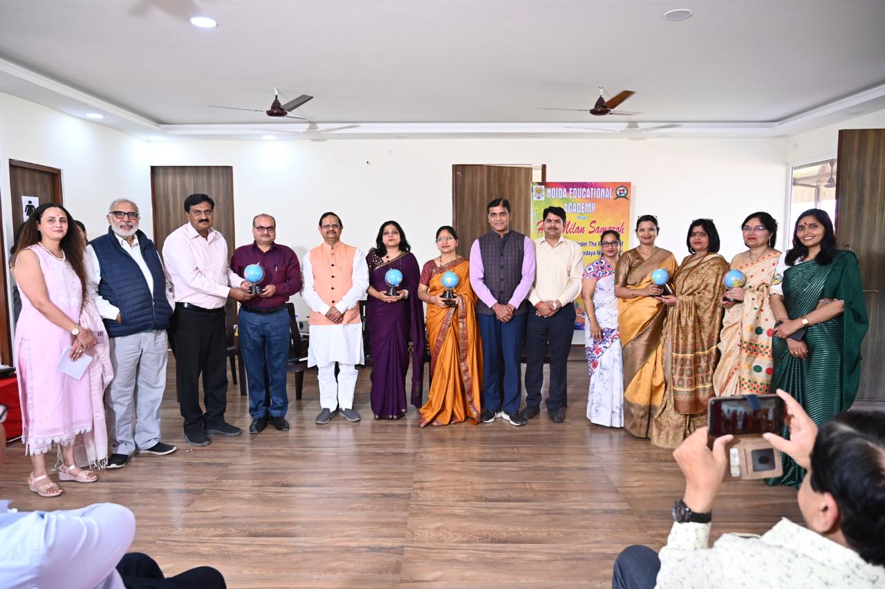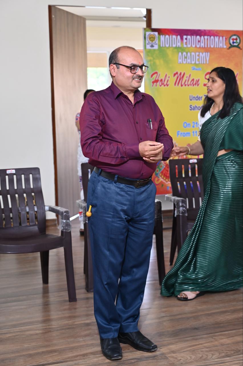 Description : Noida Educational Academy hosted the Holi Milan Samaroh, under the flagship of Sahodaya NCR (East), on March 21st 2024, at Pushpanchal Farms in sector-130, Noida, Directors, Principals and Teachers from 85 CBSE Schools in NCR East participated in this event. With a vibrant and melodic welcome, attendees gathered to celebrate the occasion under the esteemed leadership of Mr. Naveen Tyagi, Director of Noida Educational Academy, and Ms. Deepa Bhatt, Principal of Noida Education Academy. The day's proceedings commenced with an enlightening address by Mr. Sandeep Mittal, Director of Alpine group, setting a reflective tone for the event. Mrs. Deepti Sharma President of Sahodaya NCR East given introductory note further set the stage for engaging discussions and activities. A panel discussion on the National Credit Framework, moderated by Dr. Asha Sharma, Principal of Sainthood Convent School, Dadri, provided valuable insights and perspectives. The convergence of brilliant minds, including panelists such as Ms. Smita Mishra Principal Karl Huber School Noida,Ms. Gunjan Bansal Principal Divine Mother International School, Ms.Deepti Sharma Principal Pragyan Public School and President of Sahodaya NCR East ,Dr. Mrinalini Singh Principal Yadu Public School and Mr. Vinay Kumar Jha Principal fostered insightful conversations and meaningful exchanges throughout the day. These discussions contributed to strengthening the educational ecosystem in our region, paving the way for future collaboration and innovation. Holi Milan Samaroh at Noida Educational Academy brought together hearts with colours of love , laughter and togetherness. Ms. Gunjan Bansal's Secretary NCR East presentation on the Sahodaya events calendar for the year 2024-25 offered attendees a glimpse into upcoming educational activities. The audience had the privilege of hearing a speech by Prof. Mr. Sanjay Goel, the Vice Chancellor of Jaypee Group, adding academic depth to the event. Cultural activities, including a vibrant group dance performance by the host school, showcased the talent and energy of the students. Fun and games, such as Musical Chairs and the Color Game, fostered a sense of camaraderie among attendees, enhancing the overall experience. Ms. Harvinder Kaur concluded the event with a heartfelt vote of thanks, expressing gratitude to all participants for their valuable contributions. A group photo captured the memorable moments shared during the event, serving as a cherished keepsake for all involved. The celebration continued with Holi Milan and lunch, further fostering bonds and camaraderie among attendees. "Ms. Reeta Sharma gracefully anchored the Sahodaya Holi Milan Samaroh, ensuring a seamless event experience." The festivities concluded with the joyful celebration of Holi, accompanied by remarkable music performances by the children of Noida Education Academy,marking the culmination of a day filled with knowledge, camaraderie, and vibrant celebrations. It was truly a day filled with knowledge, fun, and vibrant celebrations, embodying the spirit of #SahodayaHoliMilanSamaroh and #EducationalExcellence.
