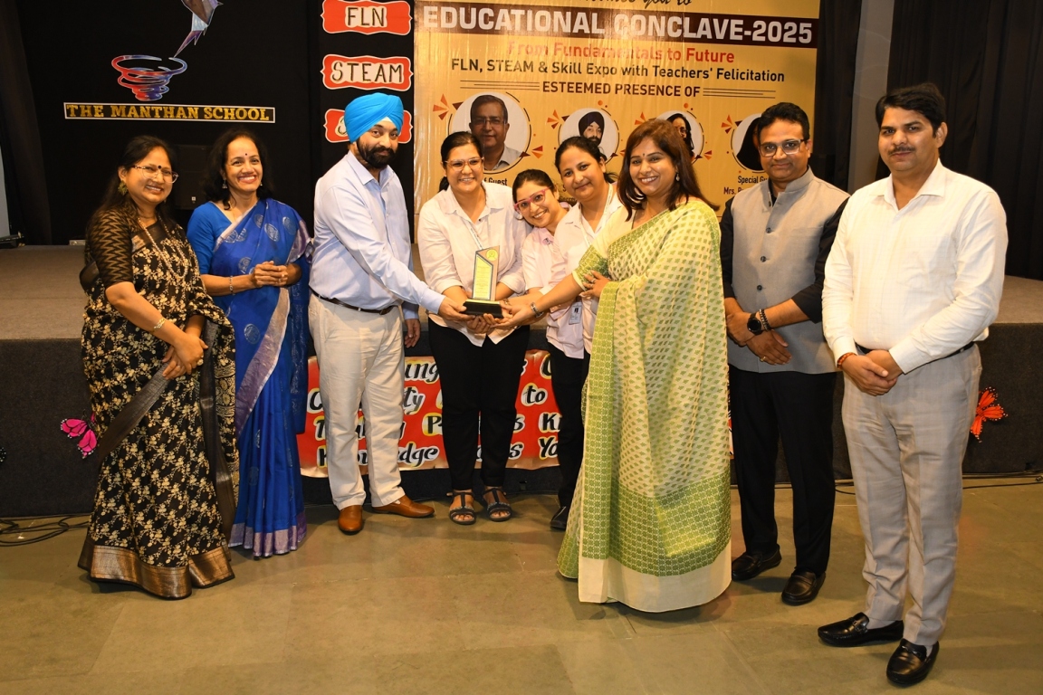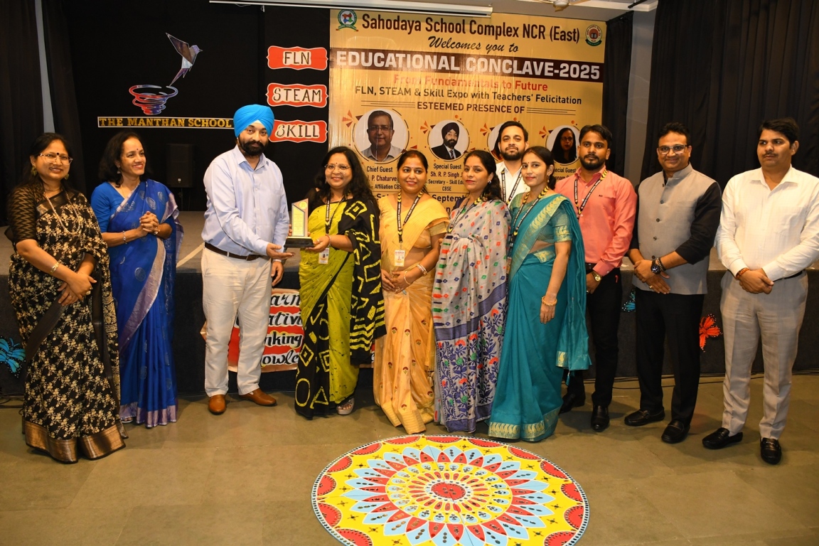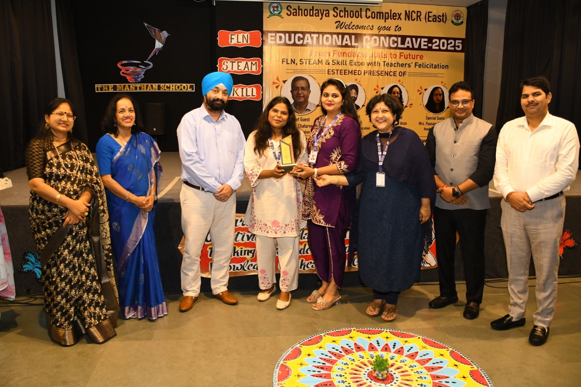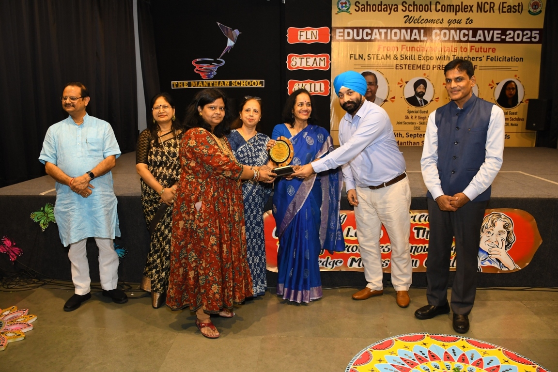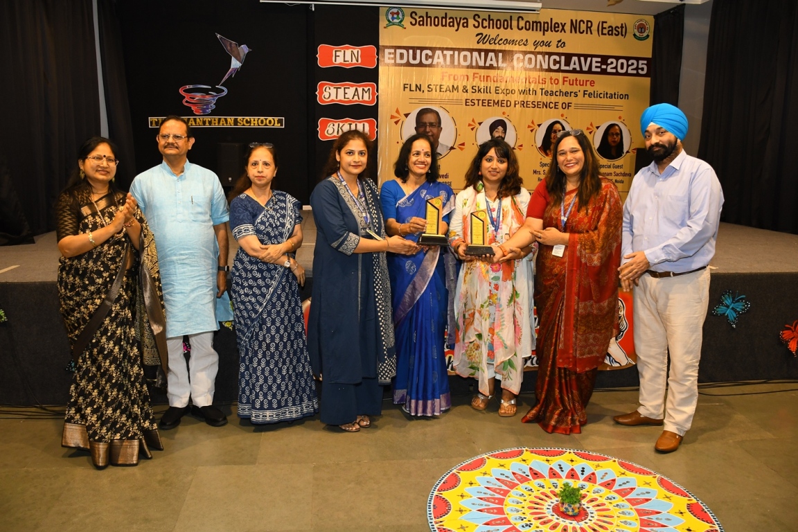 Description : The Educational Conclave 2025: FLN, STEAM & Skill Expo became a moment of pride as teachers were felicitated by eminent dignitaries for their outstanding contributions. Their dedication, innovative practices and transformative teaching methods were applauded as pillars shaping future-ready learners. The felicitation was not just recognition but a tribute to educators who ignite curiosity, nurture creativity and empower young minds to embrace tomorrow with confidence and vision.