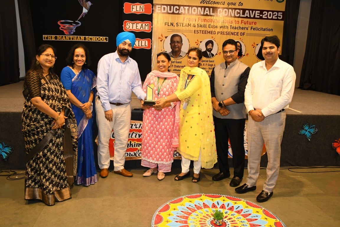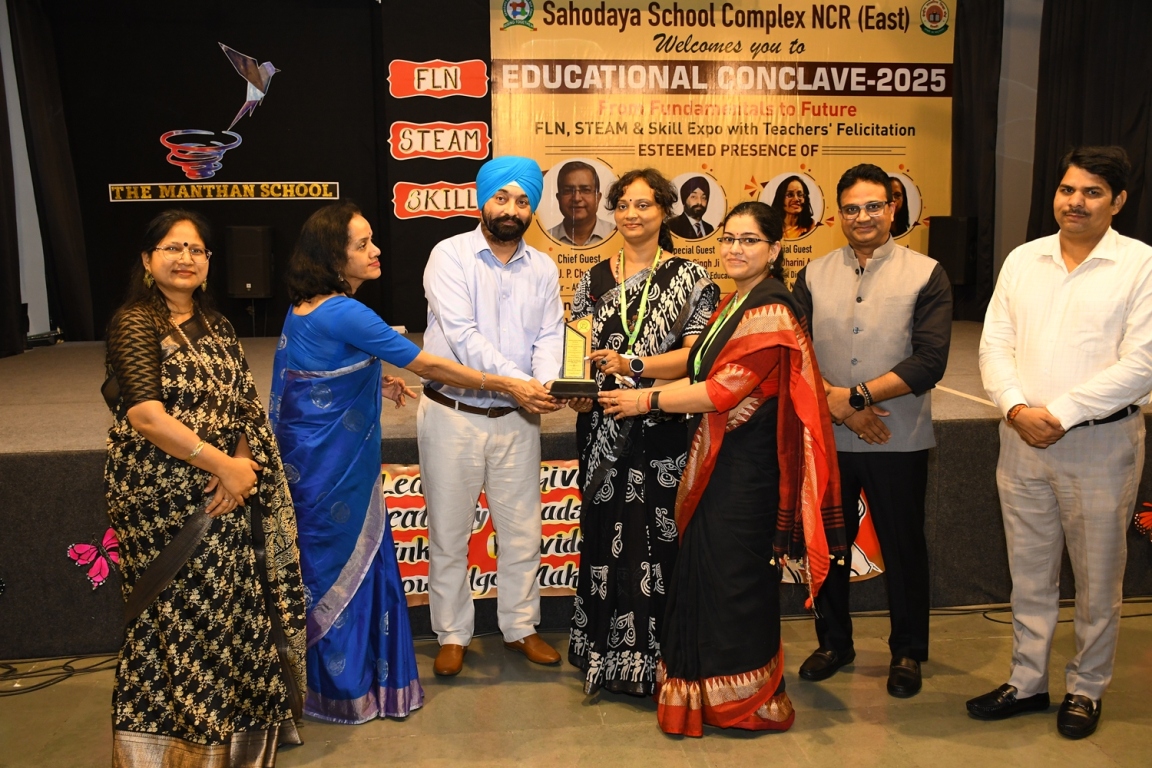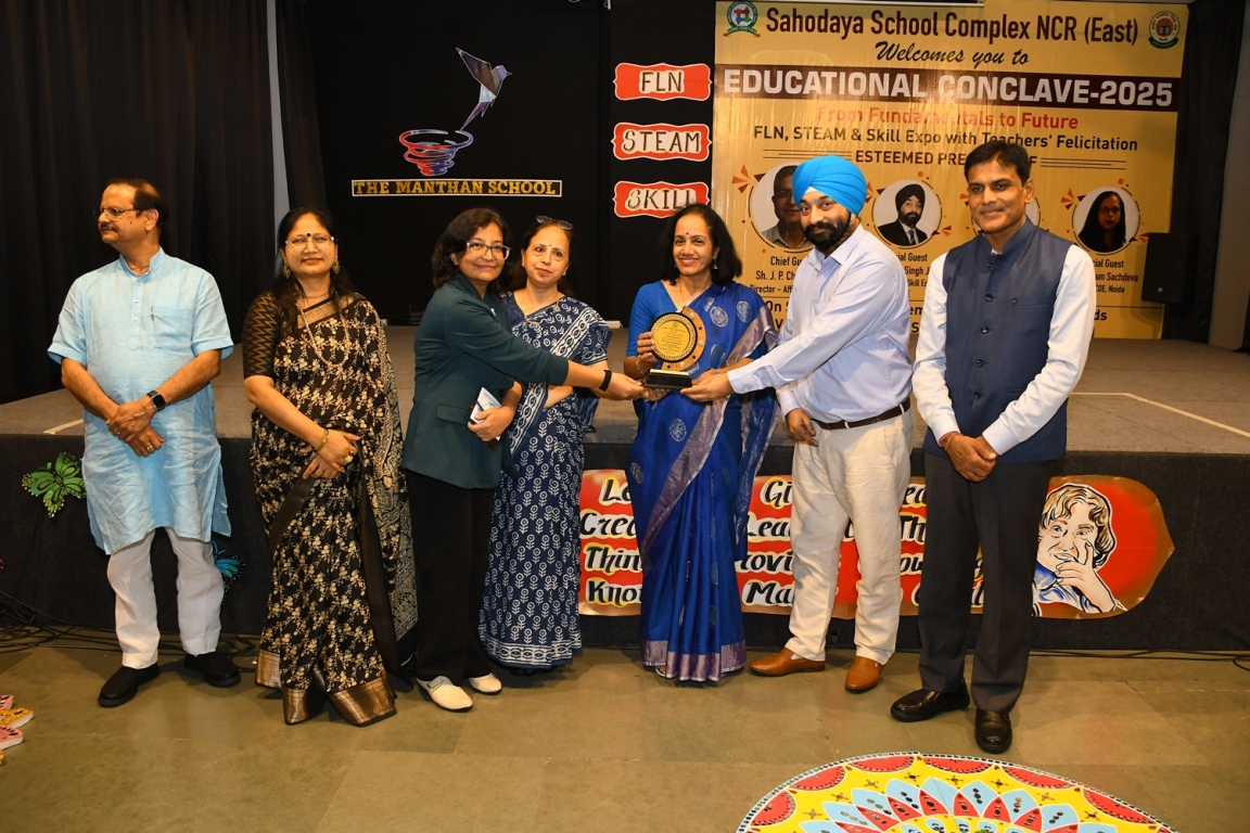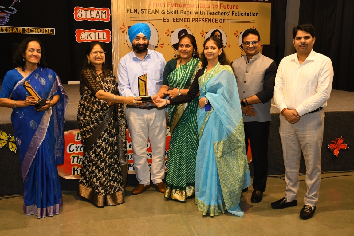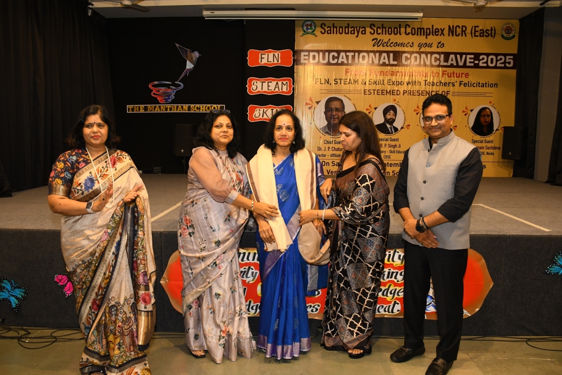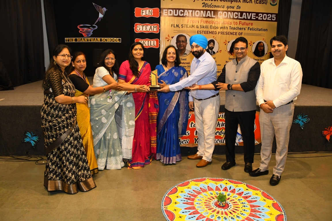 Description : The Educational Conclave 2025: FLN, STEAM & Skill Expo became a moment of pride as teachers were felicitated by eminent dignitaries for their outstanding contributions. Their dedication, innovative practices and transformative teaching methods were applauded as pillars shaping future-ready learners. The felicitation was not just recognition but a tribute to educators who ignite curiosity, nurture creativity and empower young minds to embrace tomorrow with confidence and vision.