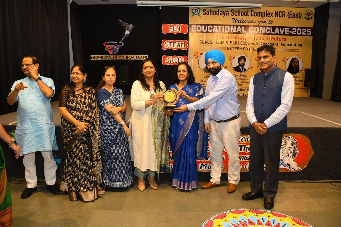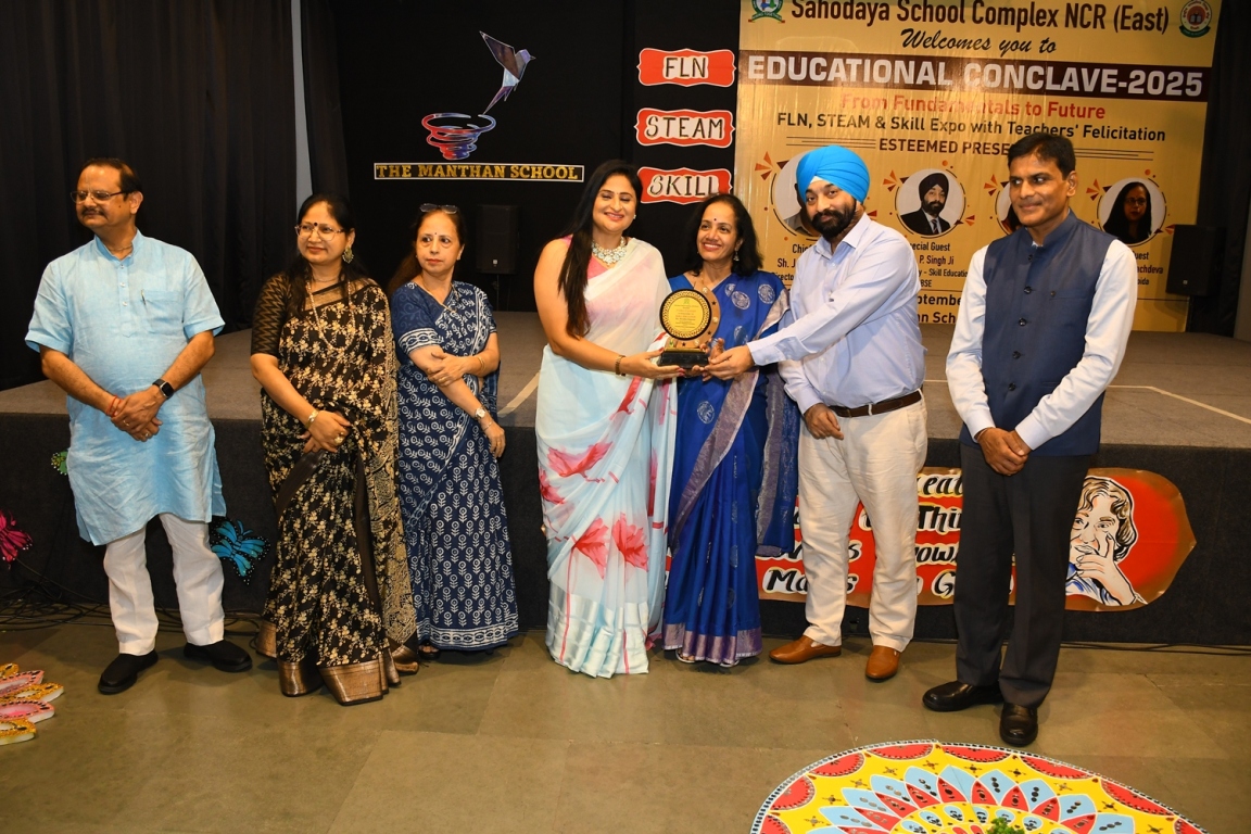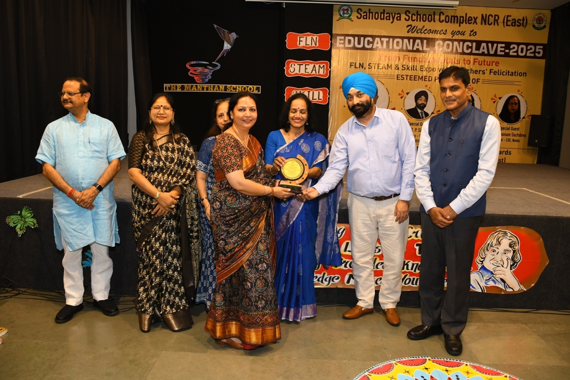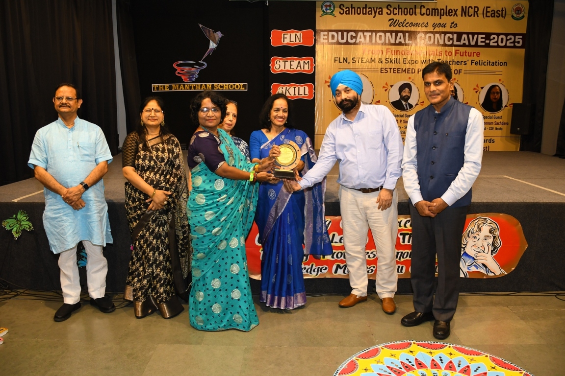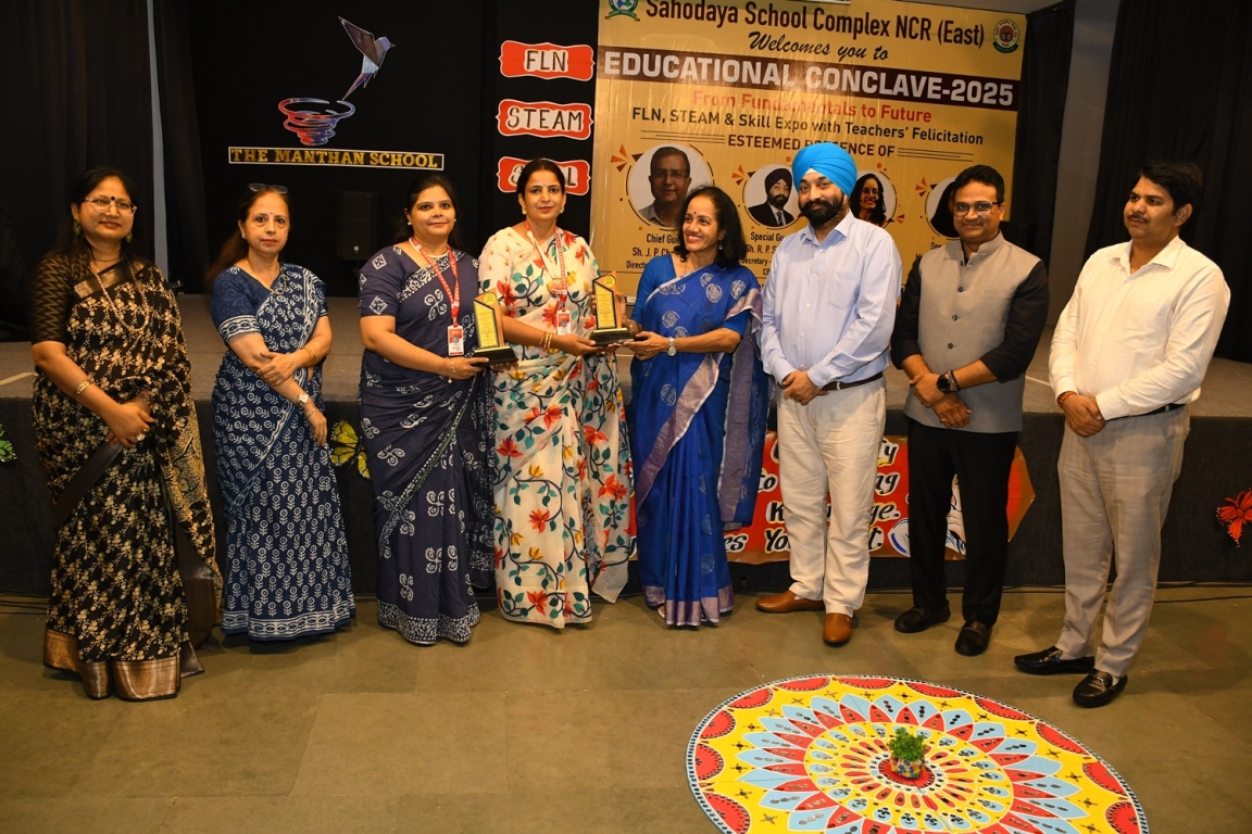 Description : The Educational Conclave 2025: FLN, STEAM & Skill Expo became a moment of pride as teachers were felicitated by eminent dignitaries for their outstanding contributions. Their dedication, innovative practices and transformative teaching methods were applauded as pillars shaping future-ready learners. The felicitation was not just recognition but a tribute to educators who ignite curiosity, nurture creativity and empower young minds to embrace tomorrow with confidence and vision.