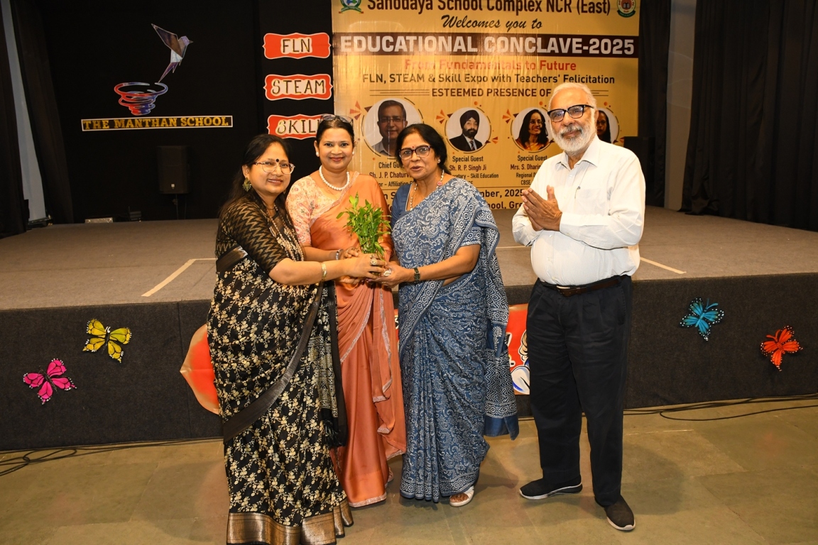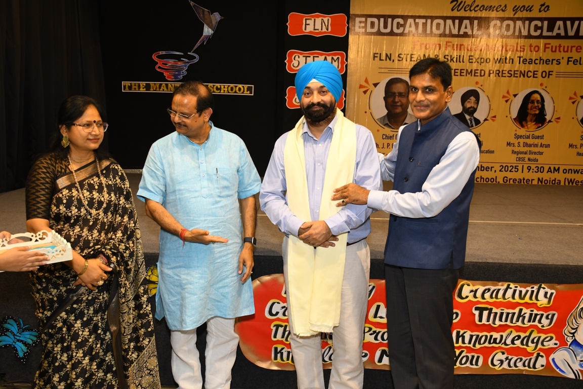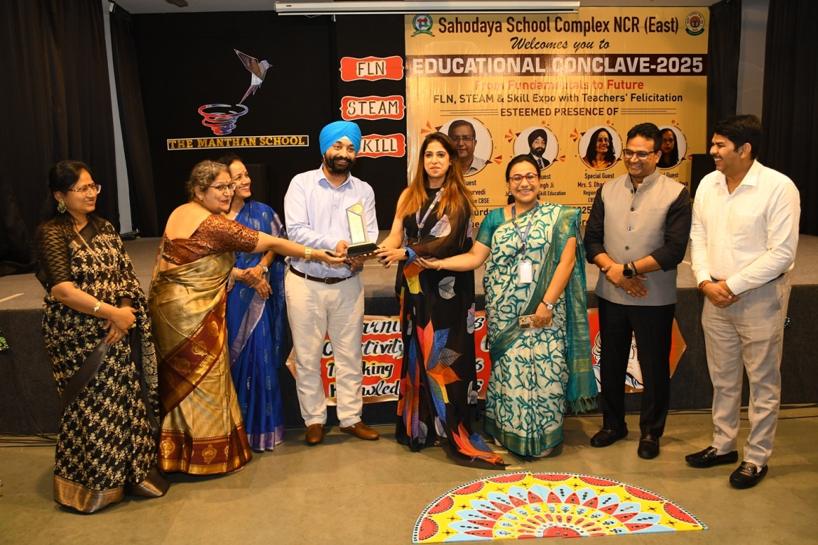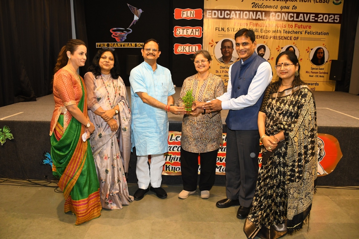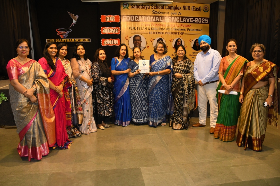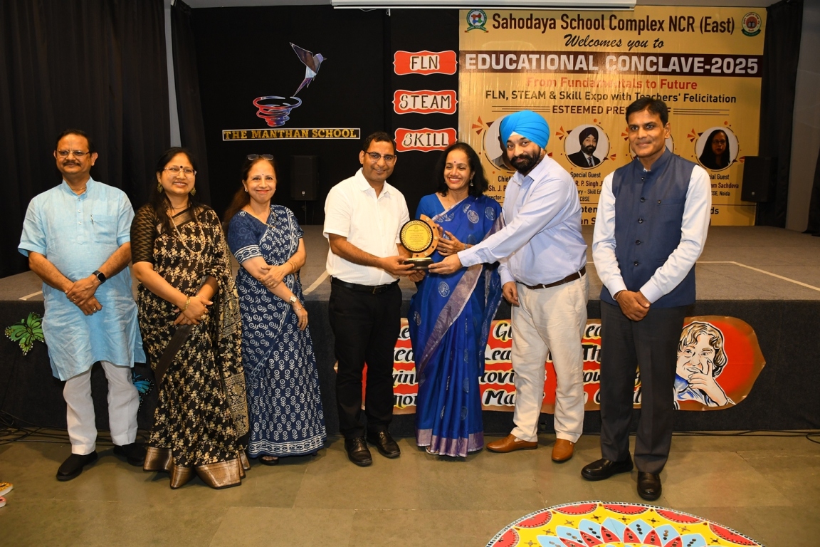 Description : The Educational Conclave 2025: FLN, STEAM & Skill Expo became a moment of pride as teachers were felicitated by eminent dignitaries for their outstanding contributions. Their dedication, innovative practices and transformative teaching methods were applauded as pillars shaping future-ready learners. The felicitation was not just recognition but a tribute to educators who ignite curiosity, nurture creativity and empower young minds to embrace tomorrow with confidence and vision.