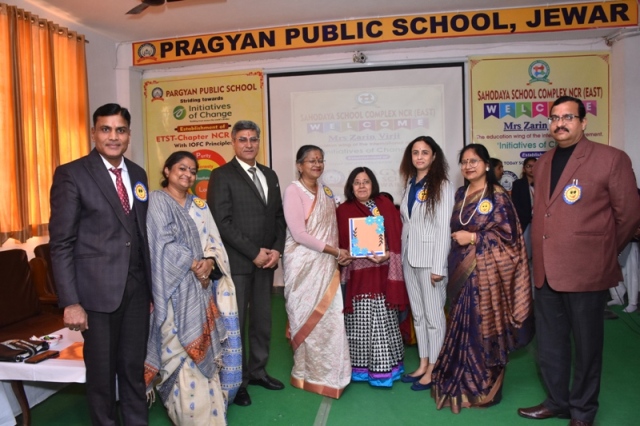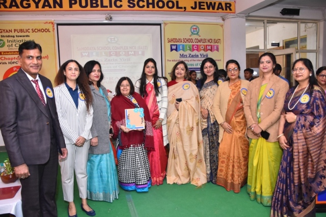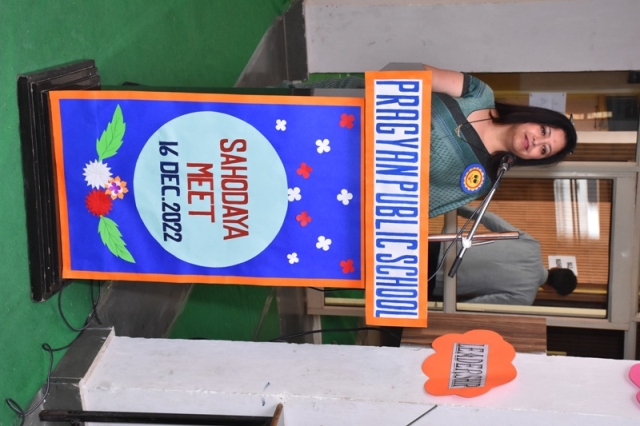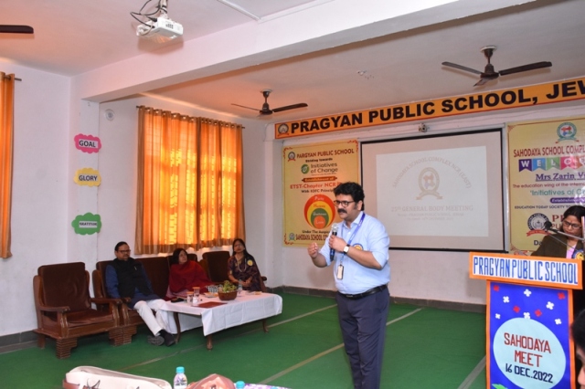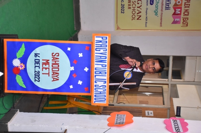 Description : “Inspiration responds to our attentiveness in various and sometimes unexpected ways” On 16 December 2022, A National Conference of CBSE Sahodaya School Complex NCR (East) was organized at Pragyan Public School, Jewar. The Directors and the Principals of around 60 schools participated in this conference which aimed at empowering schools with NEP-2020. The programme began with the lighting of the ceremonial Lamp by our by the chief guest along with the members of Sahodaya School Complex. It was followed by Saraswati Vandana and a melodious song sung by school disciples. The Manager Mr. Harish Kumar Sharma welcomed all the dignitaries to who graced the occasion. The Principal and the President of Sahodaya School Complex, Ms. Deepti Sharma elaborated the core mission and vision of Sahodaya School Complex, “Justifying its Title Rising Together”. All the guests were welcomed by applying tilak at the main gate and giving them badges. In this regard, Mrs. Zarin Virji, representative of the education wing of the international movement, laid emphasis on the concept, “Initiative of Change” with the theme “Education of today’s society tomorrow” was beautifully depicted. In this conference, Mrs. Zarin Virji, presented inspirational and effective thoughts about introspection, inclusion of moral values in children, compassion, leadership ability development-skills, respect for diversity and empathy. She solely said that the seed of goodness is found in the soil of appreciation. The revitalizing elocutionist Mrs. Gunjan Bansal, Principal of Divine Mother International School threw light on the gravity and importance of NEP-2020. In this series of speakers Mr. Deepak Kumar, Principal of Jagran Public School, Noida, spoke about inflammation of fees structure and problems related to transportation. All the dignitaries, Managers and Principals were enlightened with the sparkling words portrayed in the conference. Following the chain, Mr. Suryakant Chaturvedi, representatives of HCL TechBee put forth his views on various aspects of career choices for developing unique skills among students after +2 grade and providing them employment opportunities. The manager of the school Mr. Harish Kumar Sharma greeted and complimented all the members of Sahodaya School Complex, The Principal of the school and President of Sahodaya School Complex, Mrs. Deepti Sharma, while expressing her gratitude to all, inspired them to inculcate moral values in the students with the change according to New Education Policy-2020.